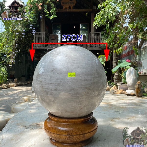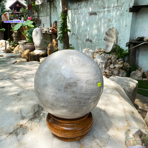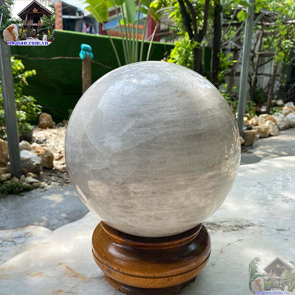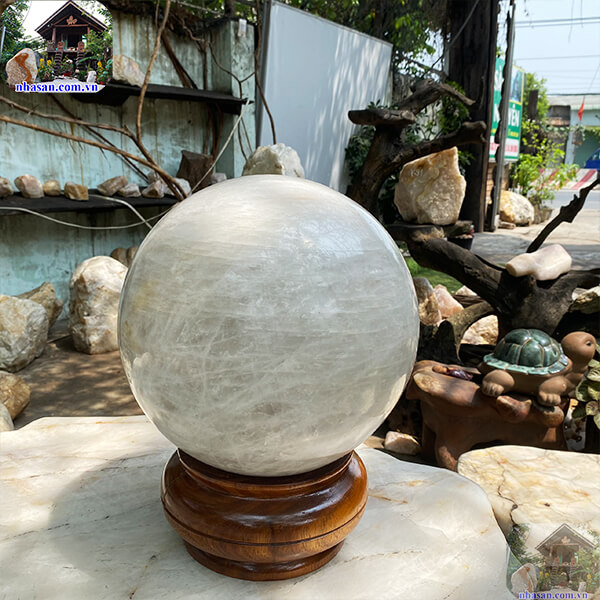 Quả cầu thạch anh trắng nguyên khối trấn trạch
