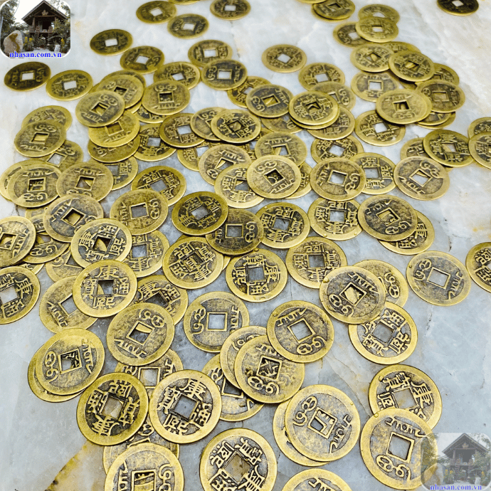 - Hành Kim: Các đồng xu được làm từ kim loại (đồng) thuộc hành Kim. Hành Kim trong phong thủy đại diện cho tiền bạc, tài lộc, quyền lực và sự vững chắc.
