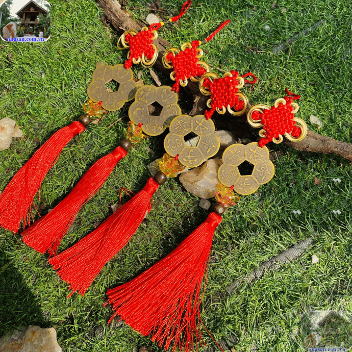 - Đặt đồng tiền hoa mai phía trước các vật phẩm này.