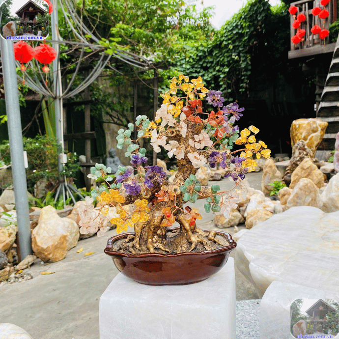 Đây là một loại cây phong thủy được chế tác từ các loại đá thạch anh tự nhiên