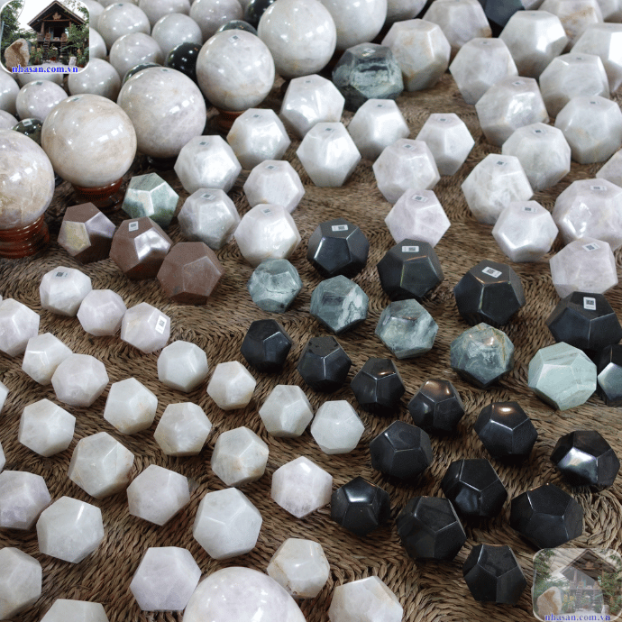 Đa dạng sản phẩm: từ đá thạch anh vụn, đá nguyên khối, quả cầu phong thủy đến trang sức như vòng tay, mặt dây chuyền, đáp ứng mọi nhu cầu của khách hàng.