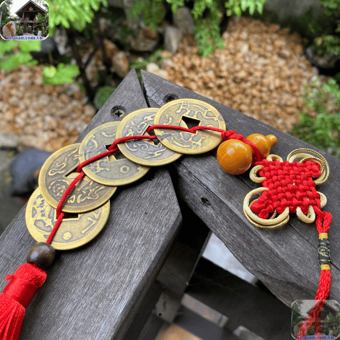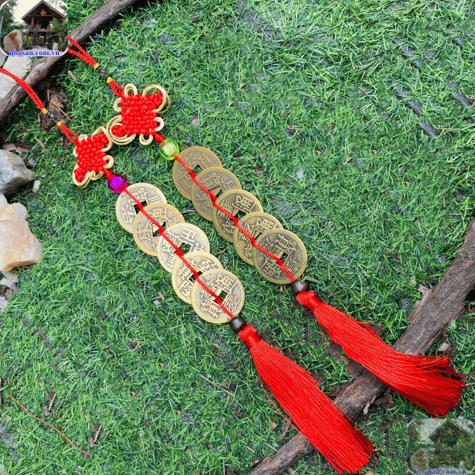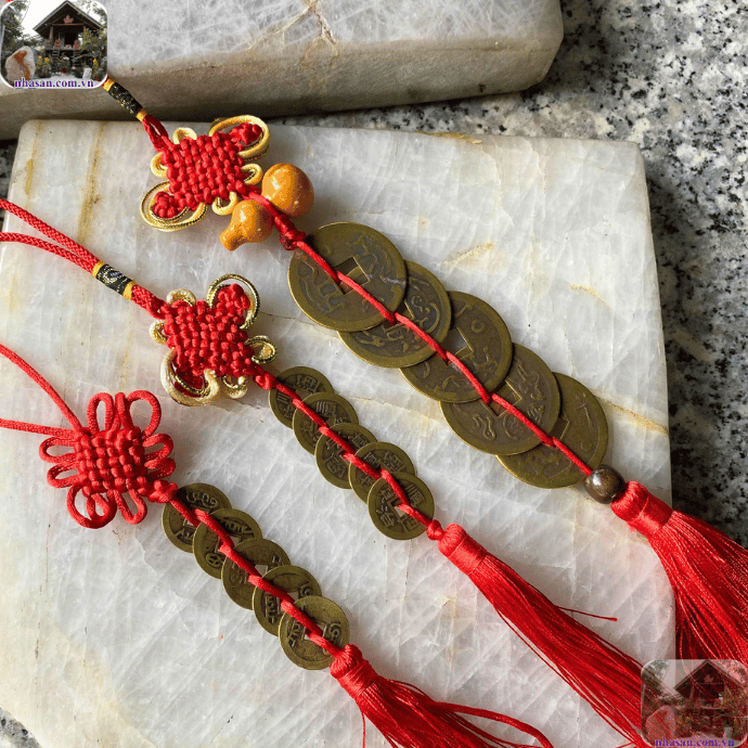 - Số lượng và cách xâu: Xâu 5 đồng xu bằng dây đỏ là chuẩn mực, tượng trưng cho sự hài hòa ngũ hành.