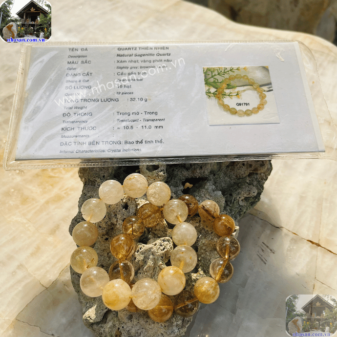 Các sản phẩm như vòng tay, vòng cổ, mặt dây chuyền thạch anh tóc vàng ở Nhà Sàn đều có sẵn. Bên cạnh đó Nhà Sàn còn nhận chế tác vật phẩm theo yêu cầu, mong muốn của bạn. Đặc biệt khi sở hữu bất kỳ vật phẩm phong thủy nào tại Nhà Sàn đều có kèm theo quà tặng nhỏ xinh và năng lượng cho bất kỳ vị khách nào.