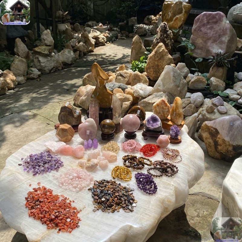 - Thạch anh (Quartz): Được mệnh danh là "bậc thầy năng lượng". Thạch anh hồng thiên về tình cảm, thạch anh trắng giúp tập trung trí tuệ, thạch anh tím giúp ngủ ngon và trừ tà.