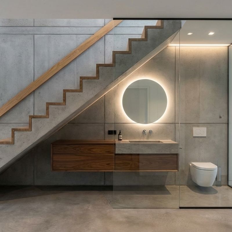 Tại Việt Nam, đặc biệt là các kiểu nhà phố, nhà ống có diện tích nhỏ (30m² - 50m²), gầm cầu thang thường bị xem là "không gian thừa" hay "góc chết". Để tiết kiệm diện tích, nhiều kiến trúc sư và chủ nhà thường bố trí một nhà vệ sinh nhỏ tại đây.