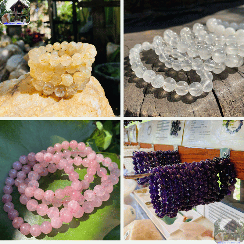 - Thu hút tình duyên & may mắn: Thạch anh hồng, cẩm thạch.