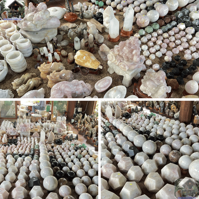 - Đa dạng các loại đá phong thủy: Từ thạch anh vụn, thạch anh thô, mã não, canxedon cho đến gỗ hóa thạch... tất cả đều được khai thác từ các mỏ đá tự nhiên tại Việt Nam.