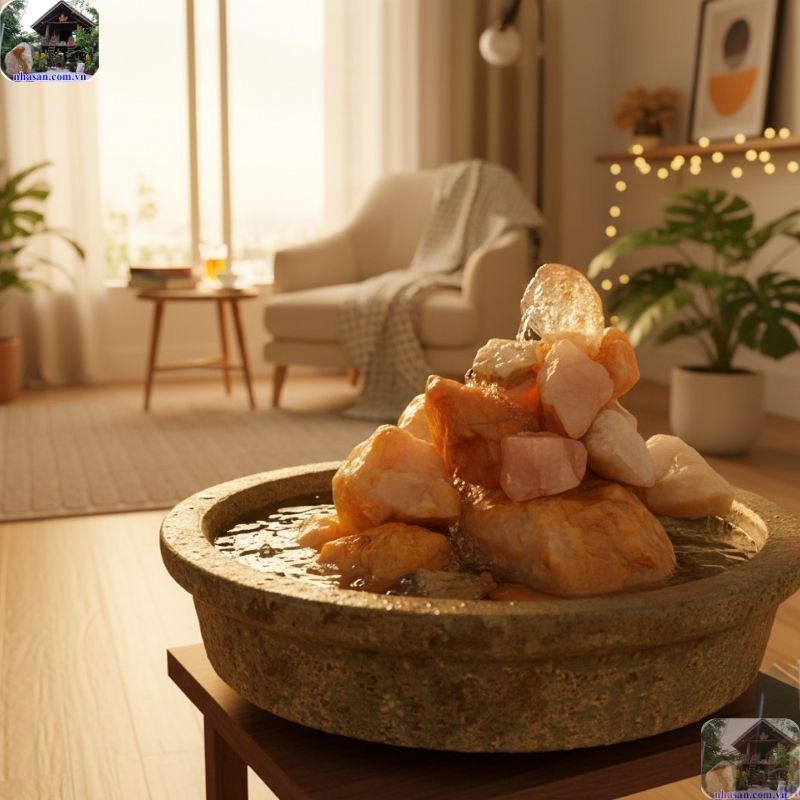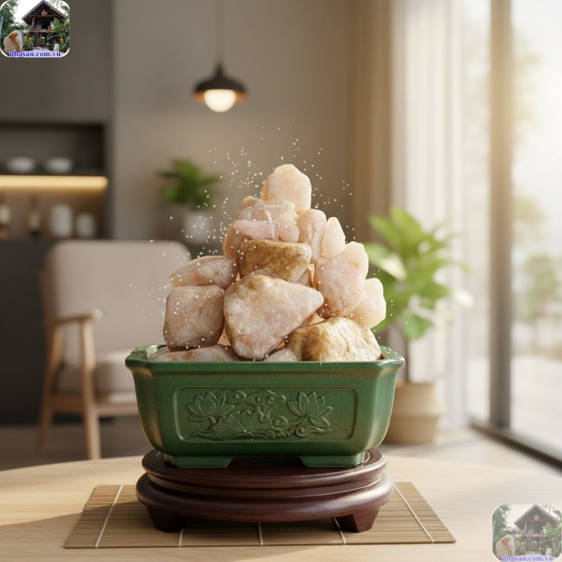 - Hạn chế ánh sáng quá gắt chiếu trực tiếp: Ánh nắng gắt có thể làm nước bốc hơi nhanh và làm giảm năng lượng của đá, nên đặt ở nơi có ánh sáng dịu.