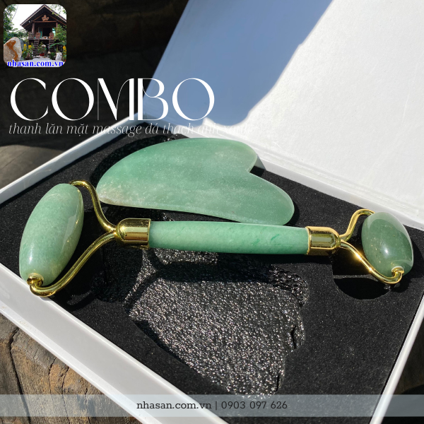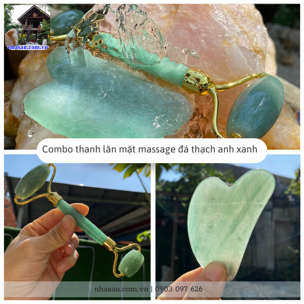 Đánh thức vẻ đẹp thanh xuân với Combo thanh lăn mặt massage đá thạch anh xanh
