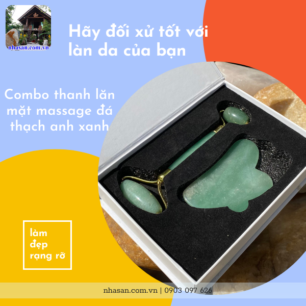 Bạn có thể mua combo thanh lăn mặt massage đá thạch anh xanh tại Nhà Sàn Tây Nguyên hoặc trên trang web nhasan.com.vn