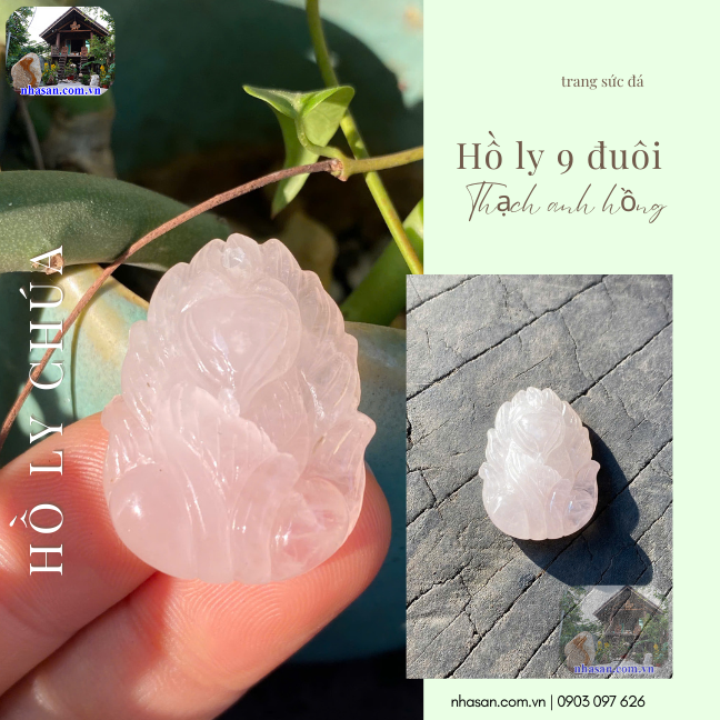 Mặt dây chuyền hồ ly 9 đuôi thạch anh hồng gửi trao yêu thương đến: