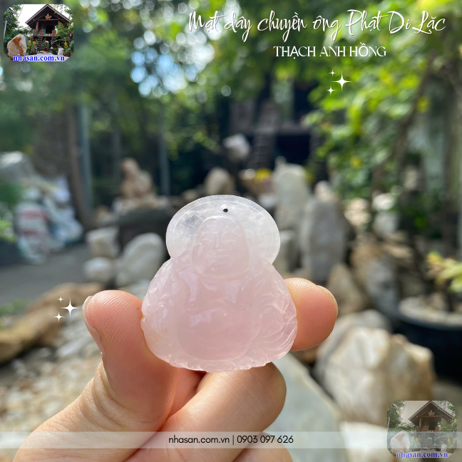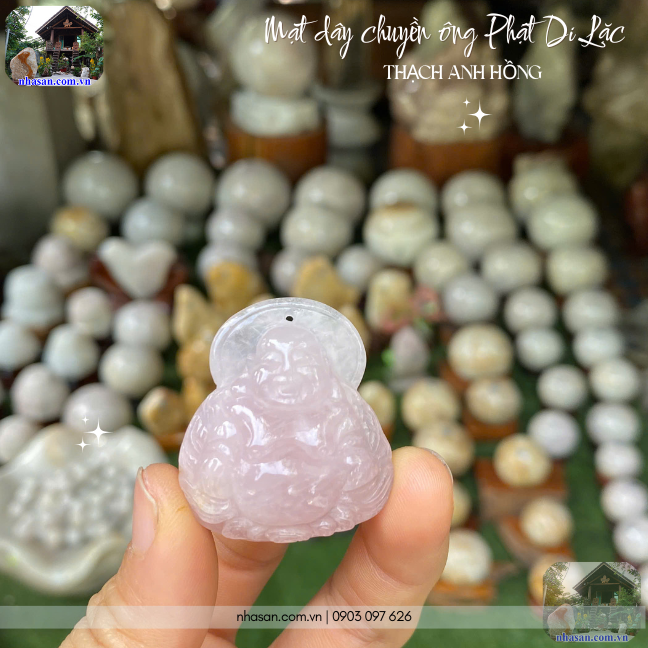 Xem mặt Phật đeo cổ bằng đá thạch anh hồng thật nhìn như thế nào