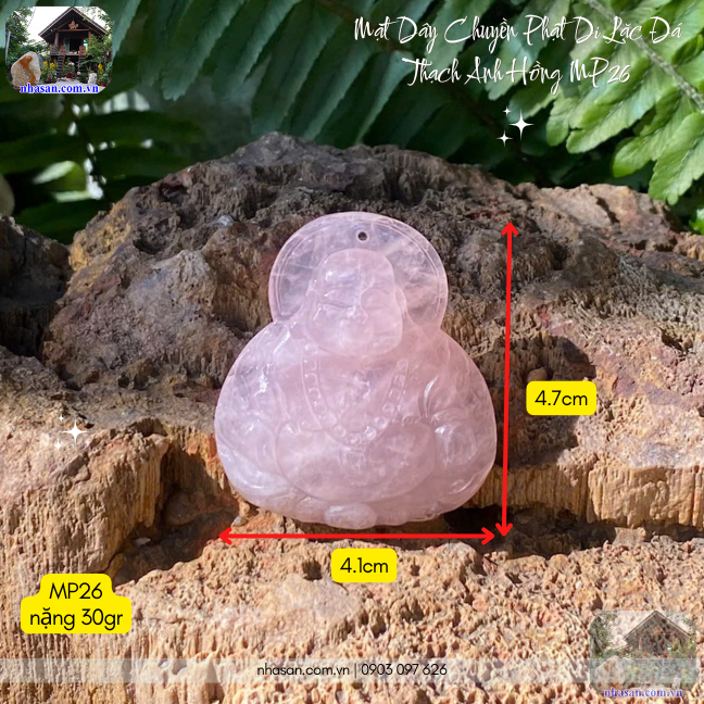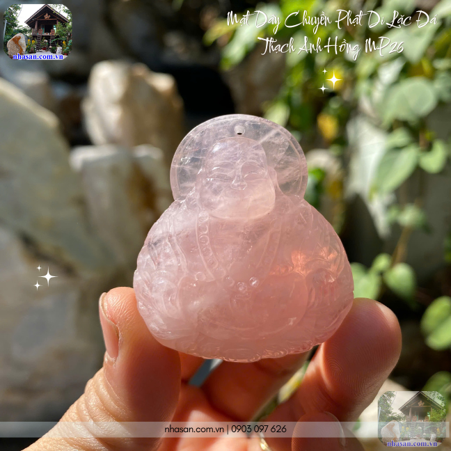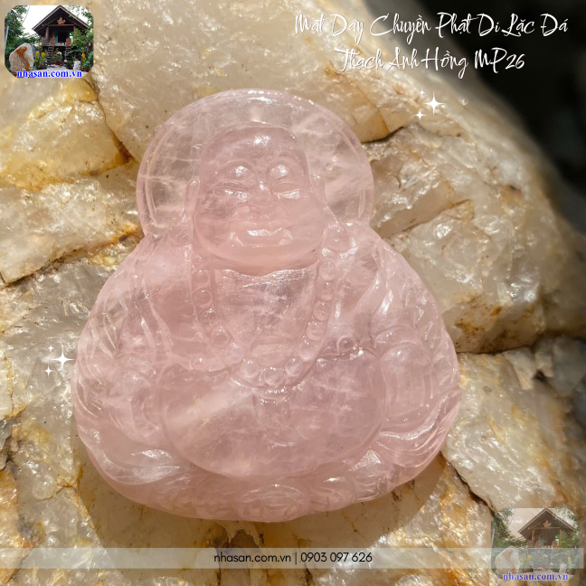 Giới thiệu sản phẩm mặt dây chuyền Phật Di Lặc đá thạch anh hồng MP26