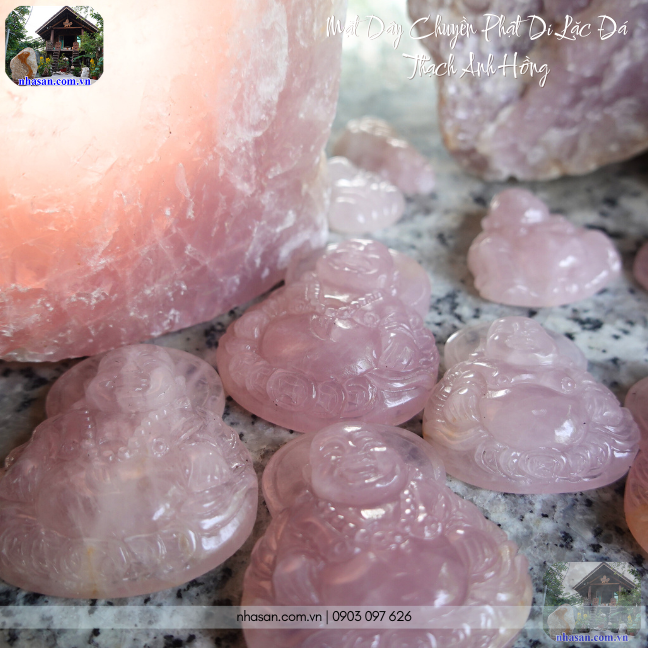 Nhà Sàn Tây Nguyên nhận chế tác mặt dây chuyền Phật Di Lặc đá thạch anh hồng theo yêu cầu