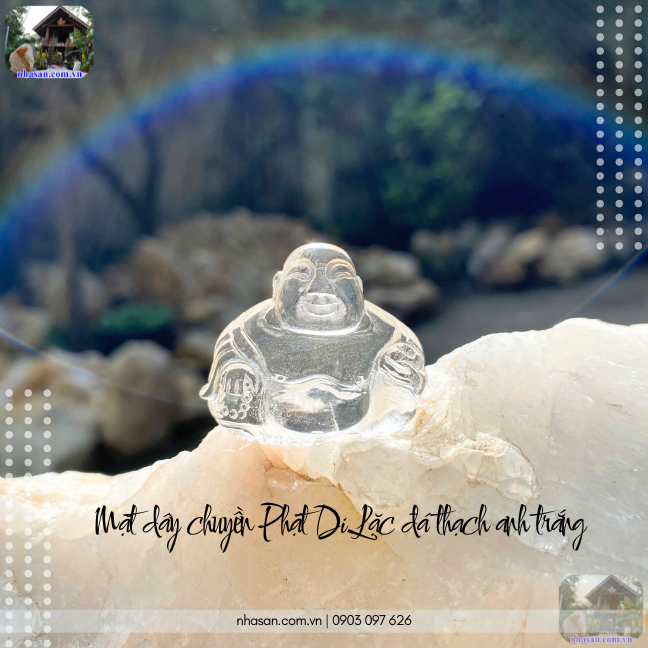 - Hình ảnh Đức Phật nhoẻn miệng cười sảng khoái, vô tư lự như xua đi mọi phiền muộn và gác lại âu lo. Đeo mặt dây chuyền Phật Di Lặc đá thạch anh trắng sẽ giúp người đeo cải thiện được tâm trạng, tinh thần được thoải mái, giảm stress hiệu quả.