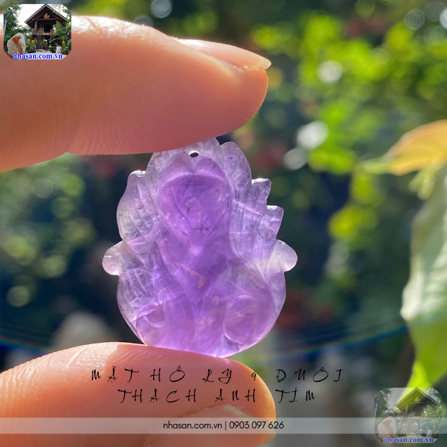 - Cách sử dụng: Đeo mặt hồ ly 9 đuôi thạch anh tím trên cổ, dây chuyền dài để mặt dây chuyền chạm gần tim, giúp hấp thu năng lượng tốt nhất.