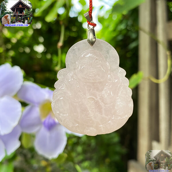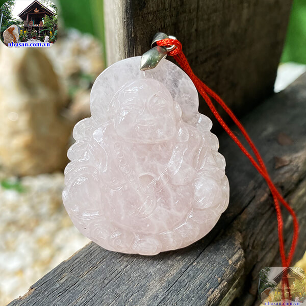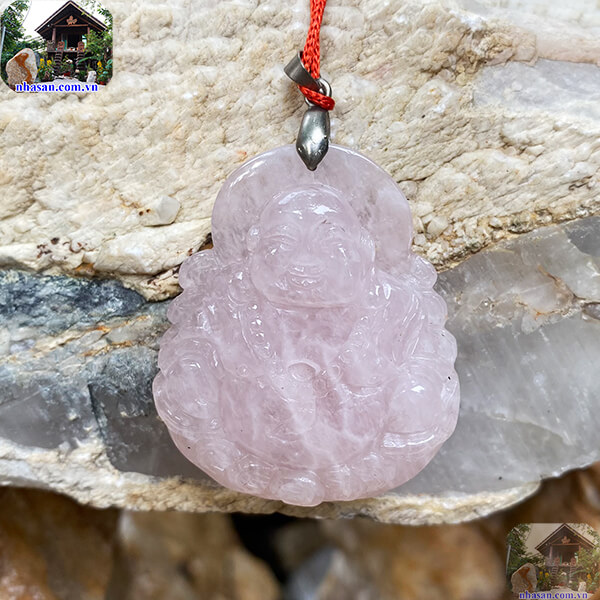 - Được chế tác từ đá thạch anh hồng tự nhiên, nguồn năng lượng từ khoáng vật bán quý này sẽ giúp tập trung não bộ, cân bằng tinh thần và năng lượng. Mặt Phật Di Lặc đá thạch anh hồng tự nhiên sẽ giúp người đeo đón nhận hạnh phúc, tránh xa mọi phiền muộn và áp lực cuộc sống.