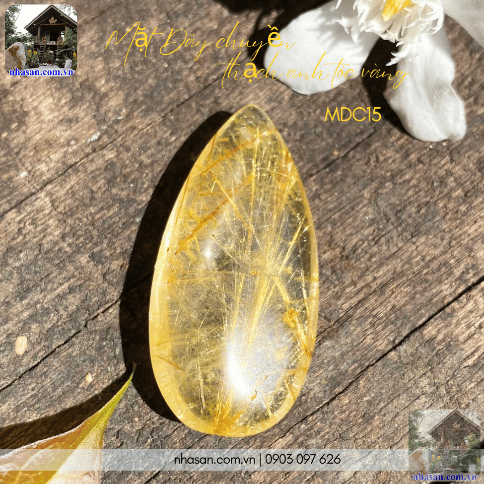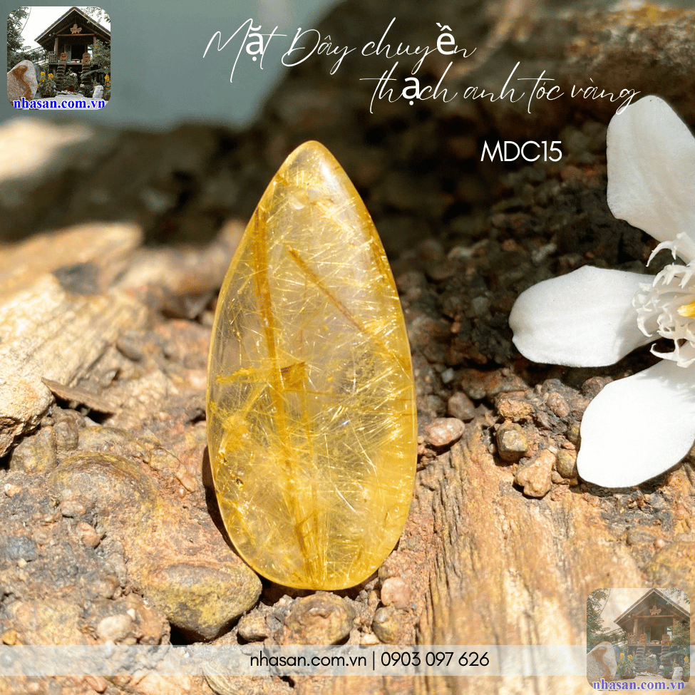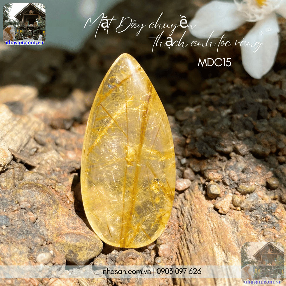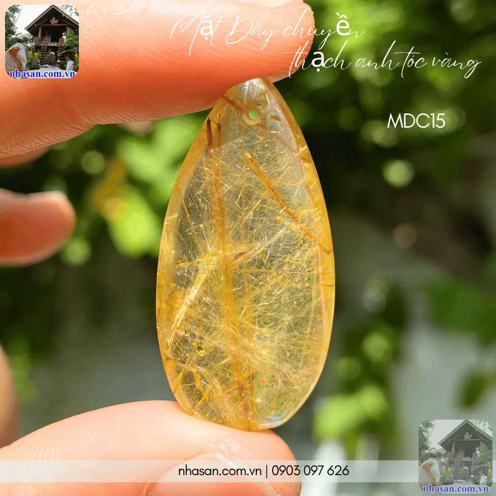 - Thiết kế độc đáo: Mặt dây chuyền thạch anh tóc vàng được chế tác tinh xảo, với những sợi tóc vàng tự nhiên lấp lánh bên trong đá, tạo nên vẻ đẹp sang trọng và quý phái.