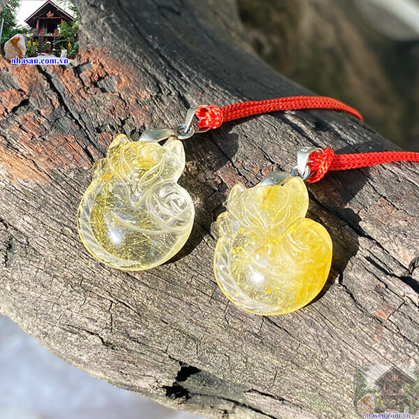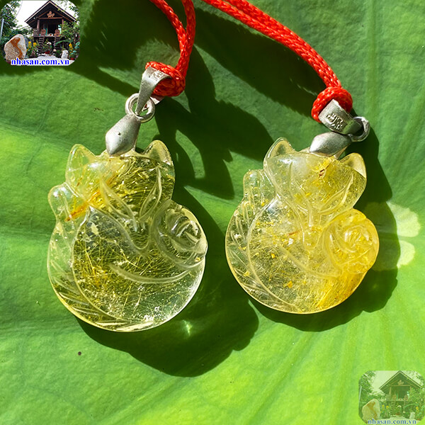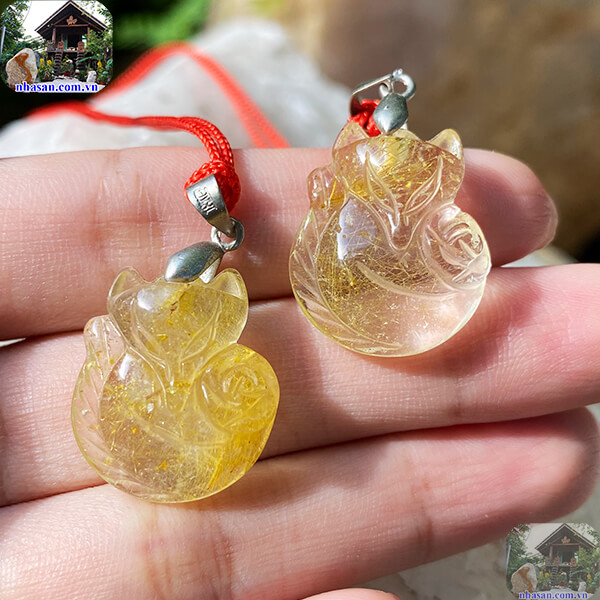 Mặt trang sức hồ ly thạch anh tóc vàng