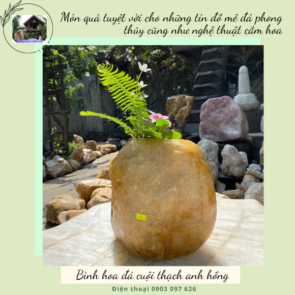 Bình cắm hoa đá phong thủy mang đến vẻ đẹp khoang sơ, mộc mạc