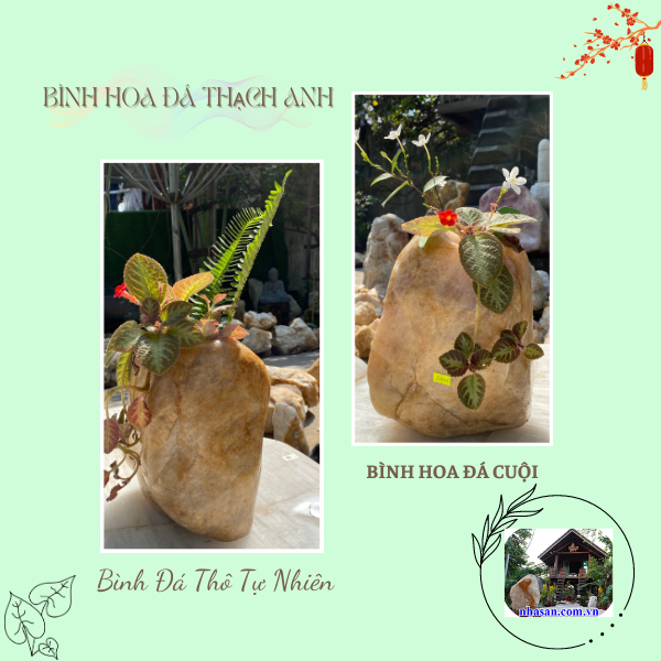Mô tả sản phẩm: Bình hoa bằng đá tự nhiên cuội thạch anh hồng