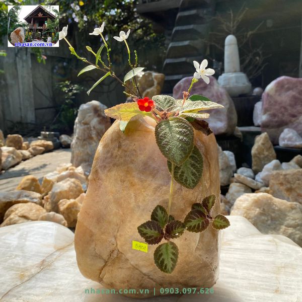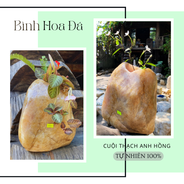 Bình hoa đá cuội thạch anh hồng nguyên khối