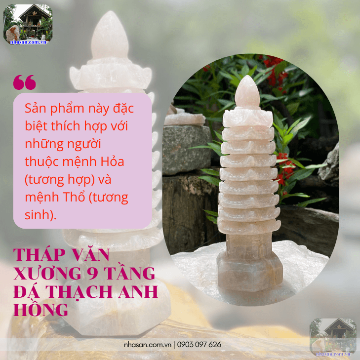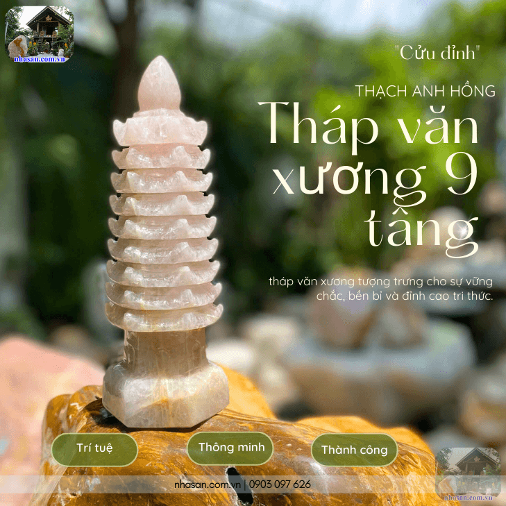 Giới thiệu sản phẩm tháp văn xương 9 tầng đá thạch anh hồng