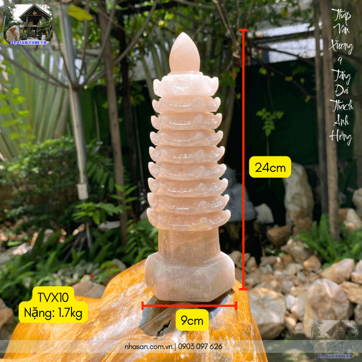 Thông tin chi tiết sản phẩm tháp văn xương 9 tầng đá thạch anh hồng