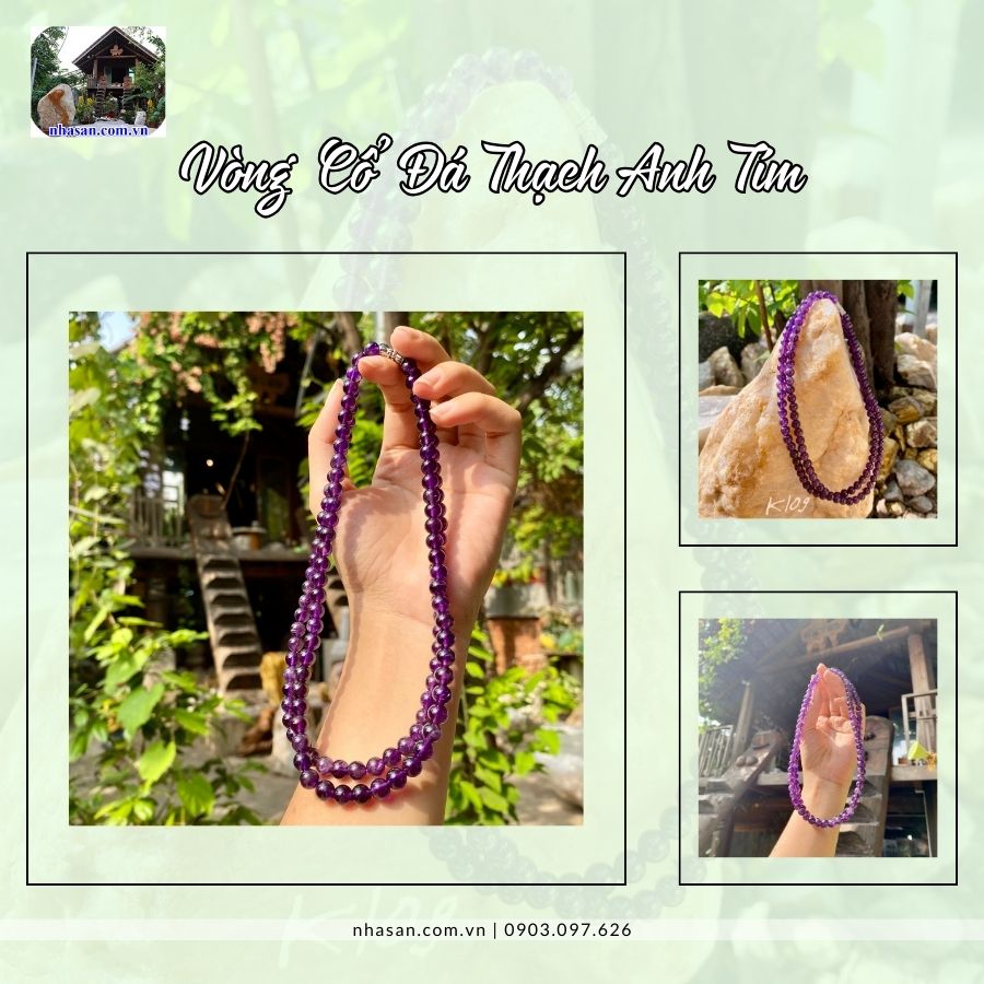 Vòng cổ đá thạch anh tím phù hợp cho mọi giới, phù hợp với mệnh hỏa và mệnh thổ.