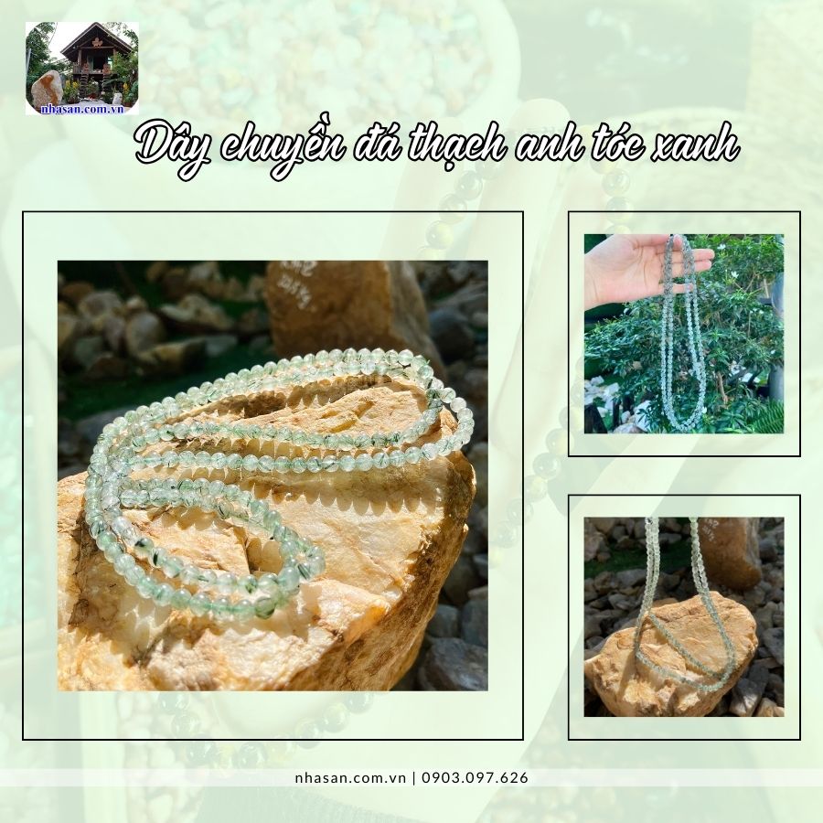 Dây chuyền đá thạch anh tóc xanh tương thích với người mệnh hỏa và mệnh mộc.
