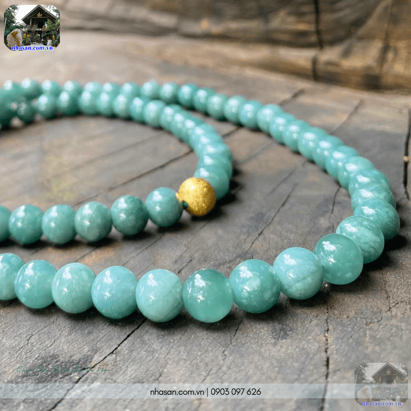 Chuỗi cẩm thạch đeo cổ 8ly (88 hạt) mix charm bi vàng sang trọng