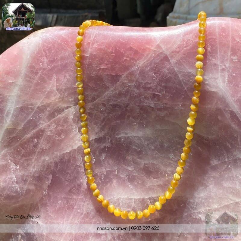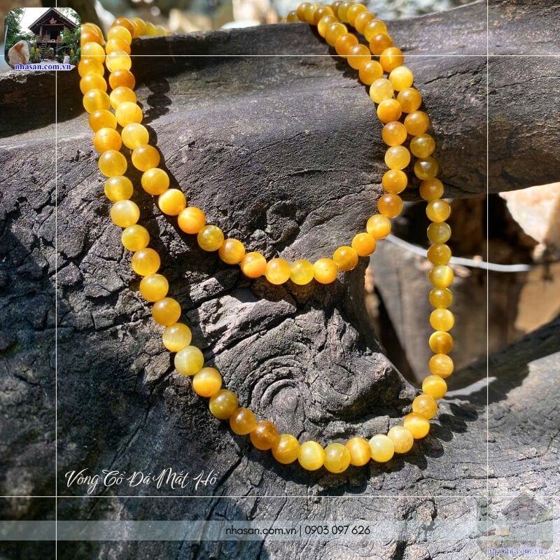 Vòng cổ đá mắt hổ tâm vàng tươi 6.5ly 108 hạt