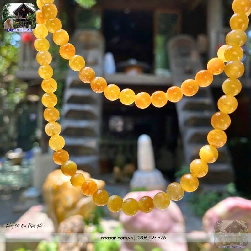 Màu vàng là màu của hoàng kim, của sự giàu sang. Chuỗi 108 hạt mắt hổ vàng tươi giống như một "vòng lập may mắn" giúp thu hút cơ hội kinh doanh và tiền tài không ngừng nghỉ.