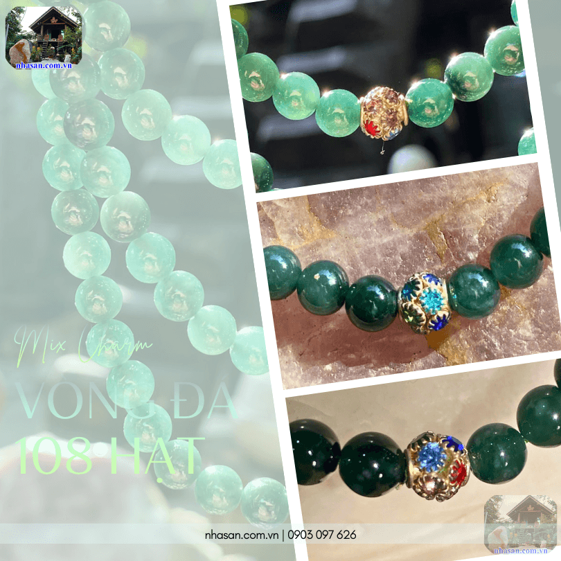 - Chế tác thủ công: Các chuỗi hạt được xâu chuỗi tỉ mỉ, nút thắt chắc chắn, charm sắc nét.