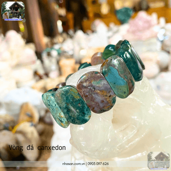 Trong phong thủy, đá canxedon được biết đến với khả năng xoa dịu cảm xúc, giảm bớt căng thẳng và lo âu. Năng lượng dịu nhẹ của đá giúp người đeo cảm thấy bình tĩnh, tăng cường sự tự tin trong giao tiếp và xây dựng các mối quan hệ tốt đẹp hơn. Đặc biệt, đá canxedon xanh lục còn được cho là mang lại sự hài hòa và thấu hiểu.