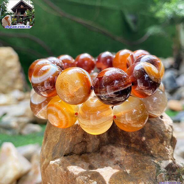 Vòng tay đá mã não là một vật phẩm phong thủy có tác dụng mang lại may mắn, tài lộc và sức khỏe cho người đeo. Theo phong thủy, đá mã não hợp với những người mệnh Kim và Thổ.