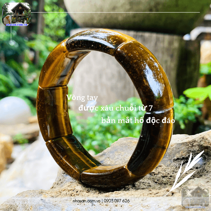 Vòng tay được xâu chuỗi từ 7 bản mắt hổ độc đáo với kích thước mỗi bản 20x33mm