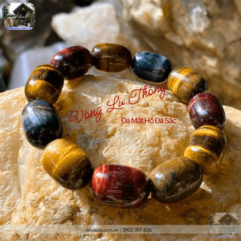Đá mắt hổ đa sắc là biến thể của thạch anh, chiếc vòng tay với sự pha trộn các màu vàng, đỏ, xanh đen, ... mang lại năng lượng cân bằng và toàn diện.