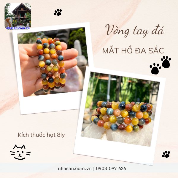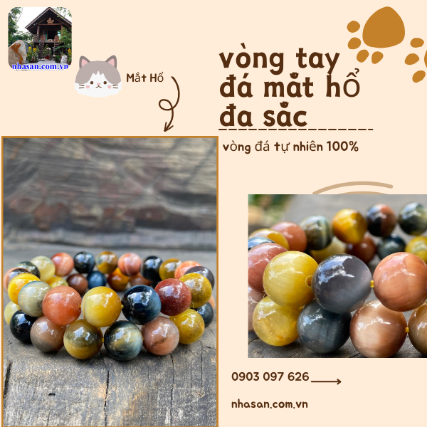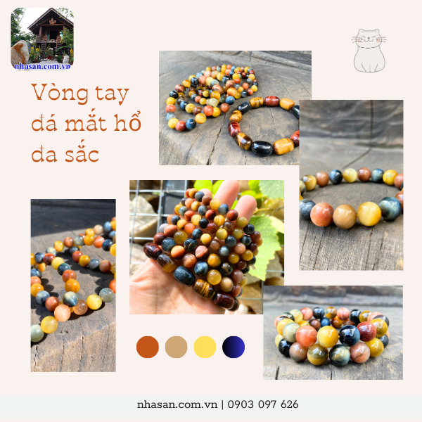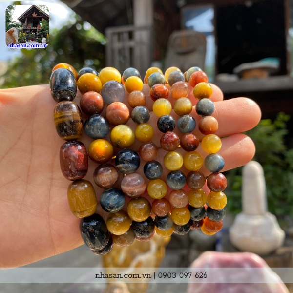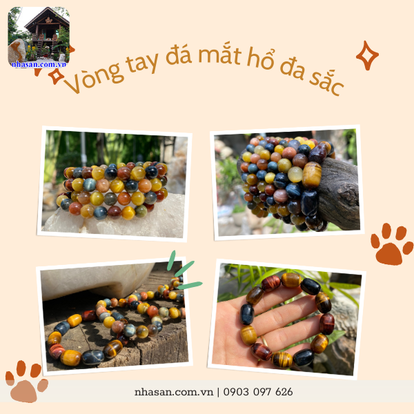 Sản phẩm vòng tay đá mắt hổ đa sắc tự nhiên từ Nhà Sàn
