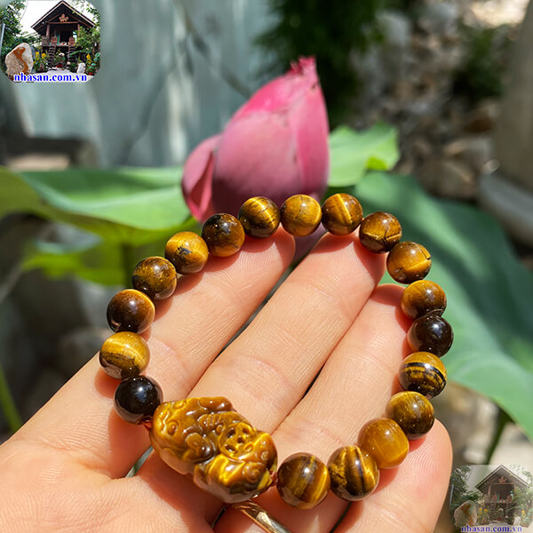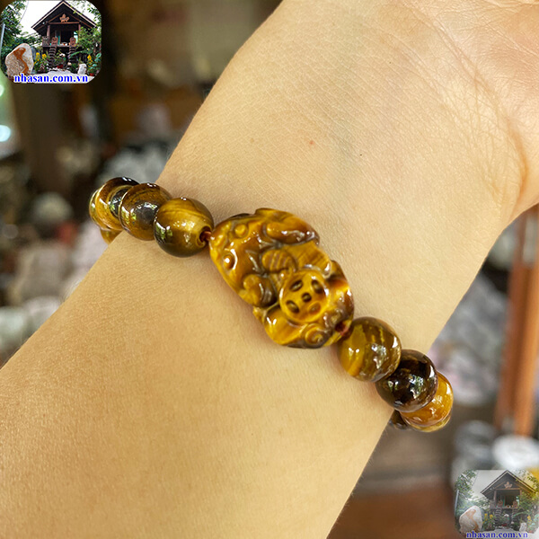 Đeo vòng tay đá mắt hổ vàng mix tỳ hưu sẽ mang lại may mắn, tài lộc và bình an trong cuộc sống. Đá mắt hổ vàng được cho là có khả năng trấn trạch, xua đuổi tà khí. Khi đeo vòng tay này, bạn sẽ cảm nhận được sự yên bình và an lành trong nội tâm.