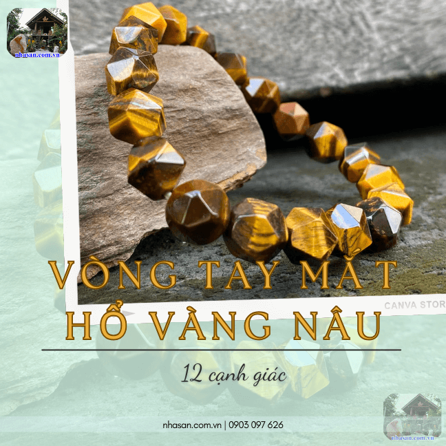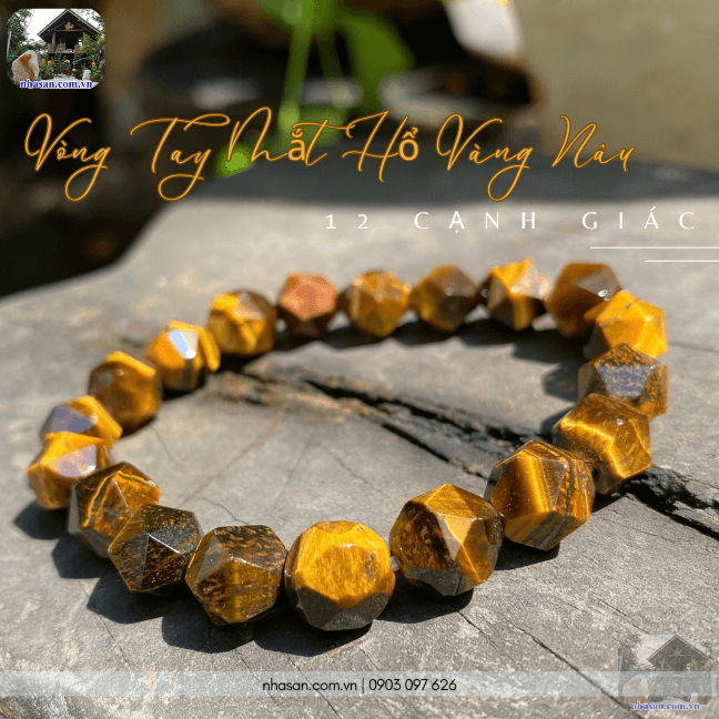 Giới thiệu sản phẩm vòng tay mắt hổ vàng nâu 12 cạnh giác