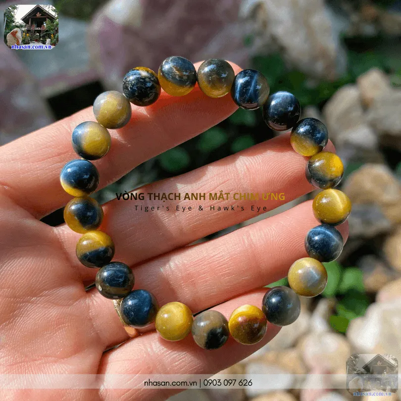 Sở hữu vòng thạch anh mắt chim ưng 8ly phối màu xanh đen và vàng độc đáo! Biểu tượng của sự thấu suốt và cân bằng cảm xúc. Thu hút năng lượng tích cực và may mắn, hợp cho người mệnh Thủy, Mộc, Kim và Thổ. Xem ngay!
