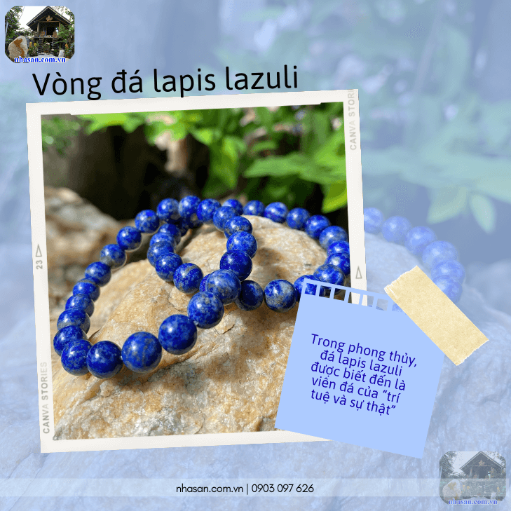 Về mặt phong thủy ngũ hành, vòng đá lapis lazuli đặc biệt hợp với những người mệnh Mộc và mệnh Thủy. Mệnh Mộc (màu xanh nước biển) sẽ được tương sinh, tăng cường vượng khí. Mệnh Thủy (Thủy sinh Mộc) cũng sẽ nhận được nguồn năng lượng hỗ trợ mạnh mẽ, giúp công việc và cuộc sống thêm thuận lợi.
