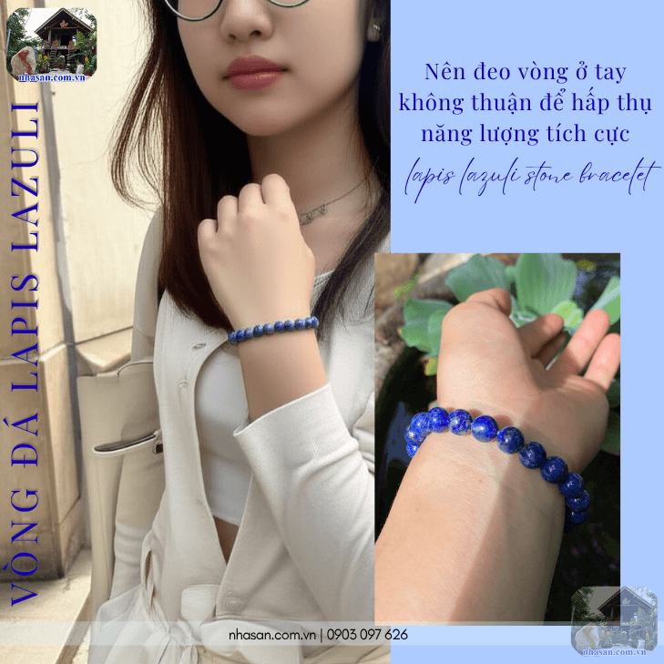 Cách đeo vòng đá lapis Lazuli đúng phong thủy: Nên đeo vòng ở tay không thuận (thường là tay trái) để hấp thụ năng lượng tích cực và bảo vệ bản thân khỏi năng lượng tiêu cực.