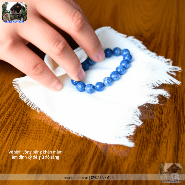 Dùng khăn mềm ẩm để vệ sinh vòng đá lapis lazuli
