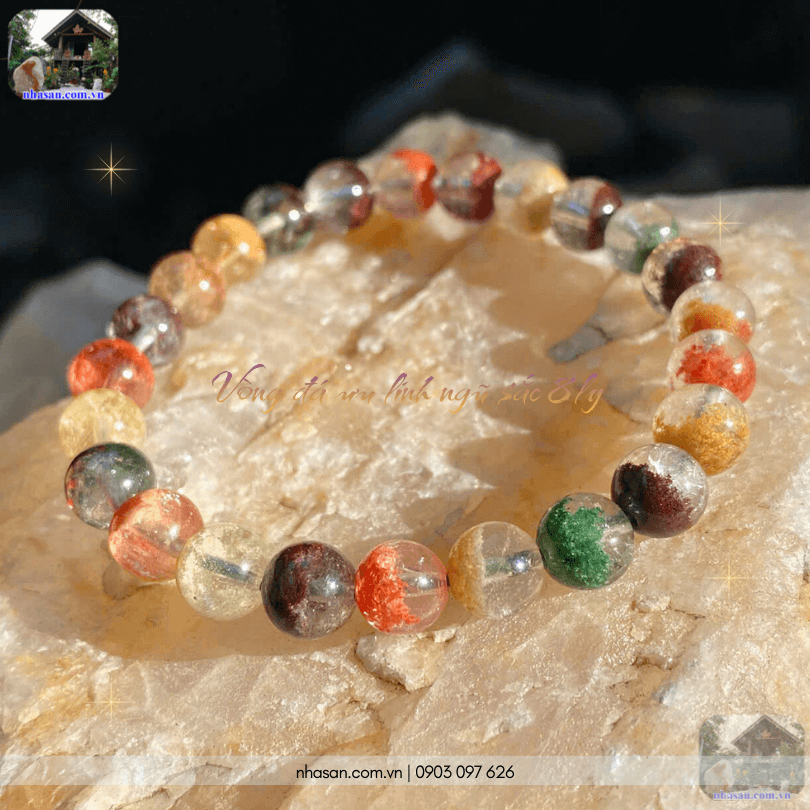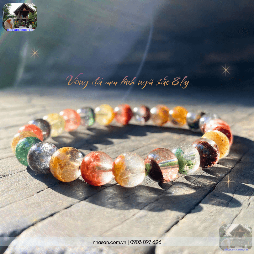 Ý nghĩa phong thủy và công dụng tuyệt vời của vòng đá ưu linh ngũ sắc 8ly