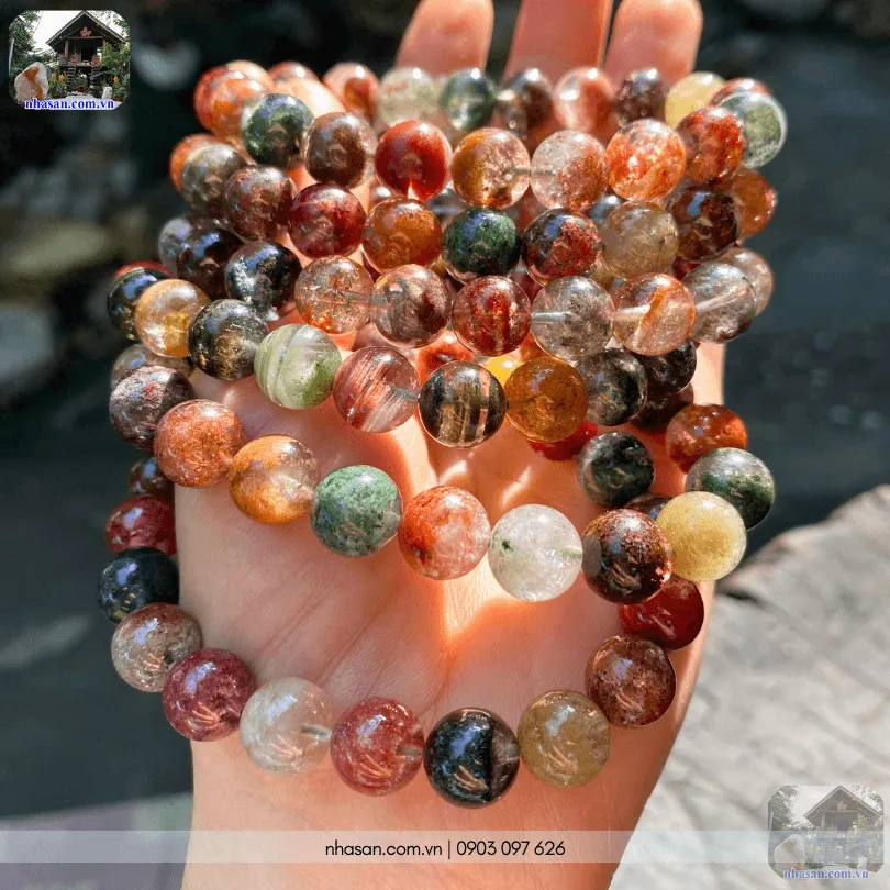 - Tên sản phẩm: Vòng đá ưu linh ngũ sắc 10ly (Multi - color Phantom Quartz)