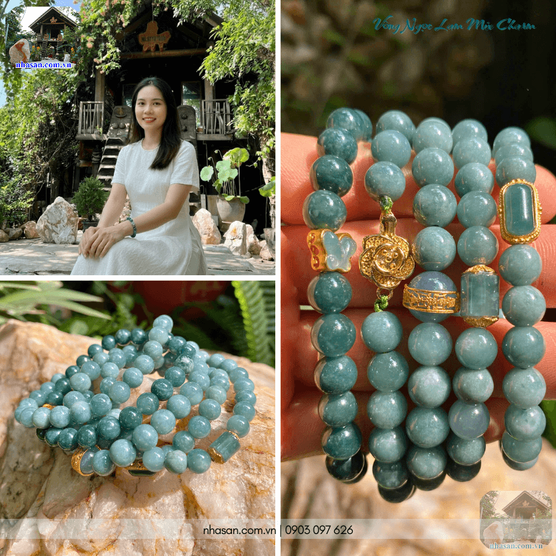 Vòng ngọc lam mix charm