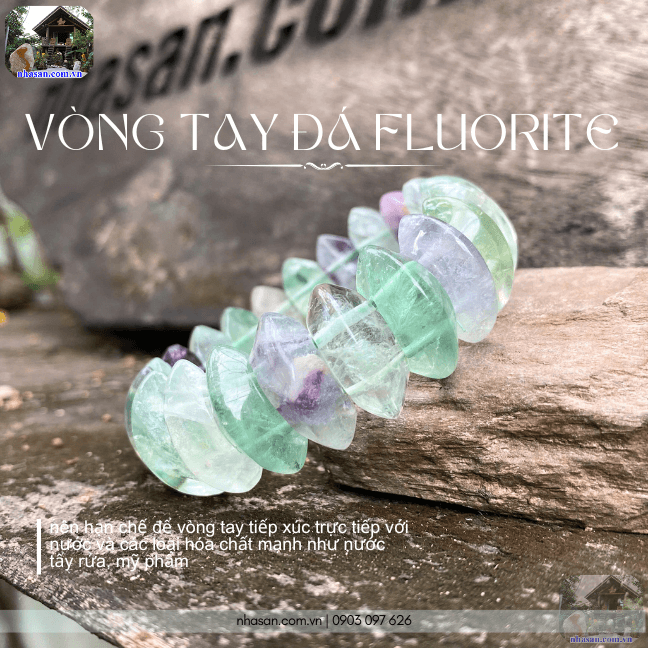Mặc dù đá fluorite có độ cứng tương đối, bạn vẫn nên hạn chế để vòng tay tiếp xúc trực tiếp với nước và các loại hóa chất mạnh như nước tẩy rửa, mỹ phẩm. Điều này giúp bảo vệ độ bóng và màu sắc tự nhiên của đá.