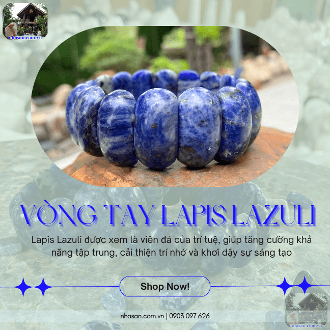 Hãy để vòng tay đá Lapis Lazuli của Nhà Sàn Tây Nguyên trở thành người bạn đồng hành trên con đường tìm kiếm sự bình an, trí tuệ và may mắn! Liên hệ ngay để sở hữu tuyệt phẩm phong thủy này.